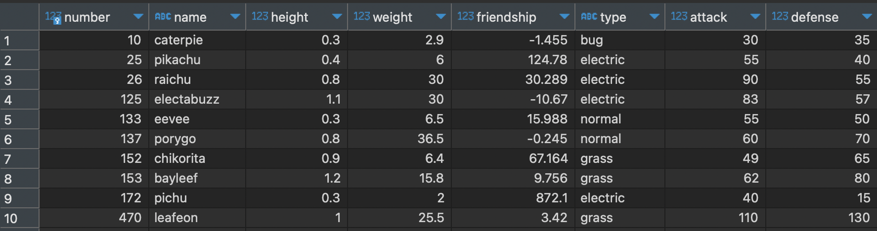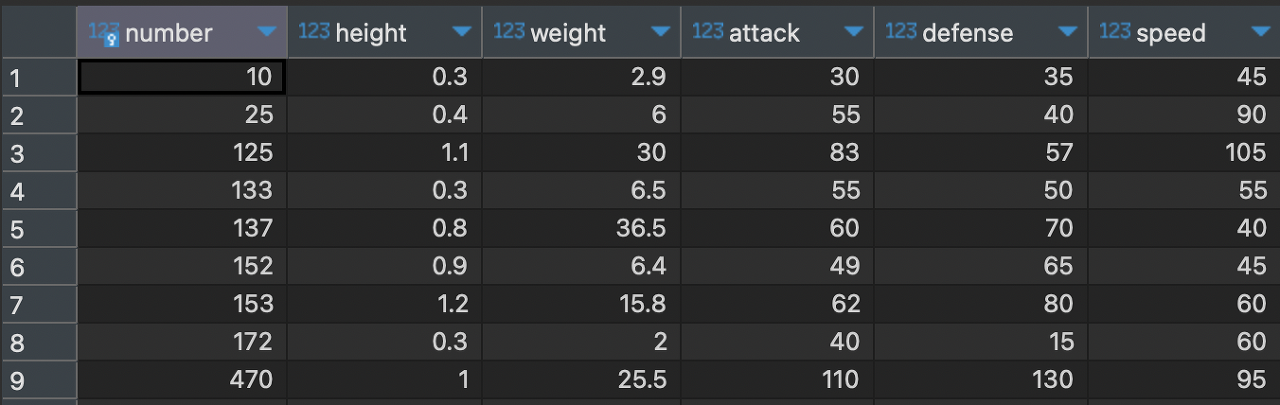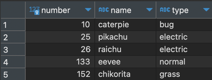 WHERE name = 'pikachu';